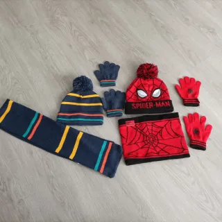 2 Set invernali per bambini con due cappelli, due sciarpe e due paia di guanti. Taglia 3/4 anni