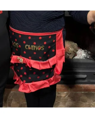 Sciarpa Fallera in color crema, ideale per adulti e bambini. Tessuto leggero con frange. Design triangolare. Finitura con frange sui bordi.