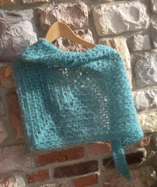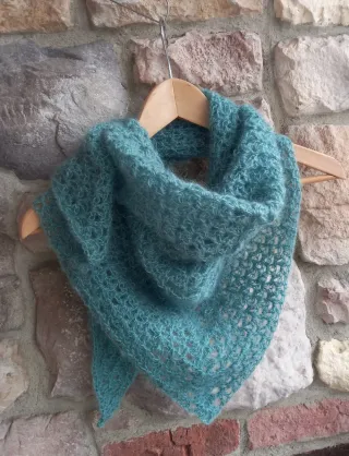 Baktus lavorato a mano in filato mohair, morbido e leggero. - Lavorazione all'uncinetto. - Design a triangolo. - Filato soffice e arioso.