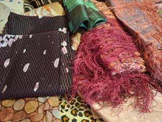 Foulard e sciarpe leggere ottimo come complemento.varie misure e colori. 3 euro per foulard.ottimo affare. - Tessuto plissettato con motivo floreale. - Tessuto con frange. - Tessuto con stampa animalier. - Tessuto con pois.