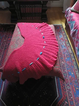 Scialle fatto a mano in lana colore rosso rubino