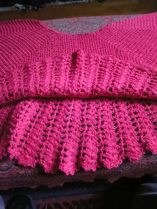 Scialle in pizzo di lana morbido, leggero e caldo, come nuovo. Misure: lunghezza 185cm + 14cm di frangia per lato, larghezza 64cm