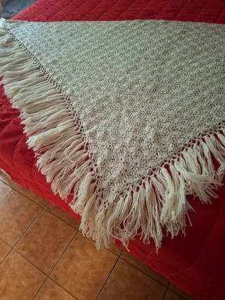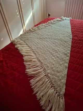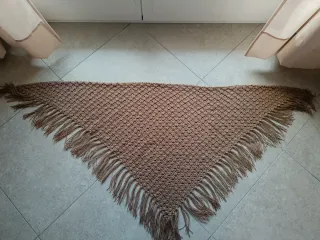 Sciarpa triangolare fatta a mano, perfetta per aggiungere un tocco di stile. - Lavorazione all'uncinetto. - Design con frange. - Tonalità calda e versatile. Cm150 x 60 Marrone Perfette condizioni usato nuovo
