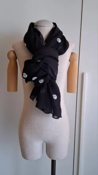 Sciarpa nera con un motivo di pois bianchi. - Fantasia a pois. - Colore nero con pois bianchi. -Usata in ottime condizioni ( piccolo segno di usura , poco visibile)
