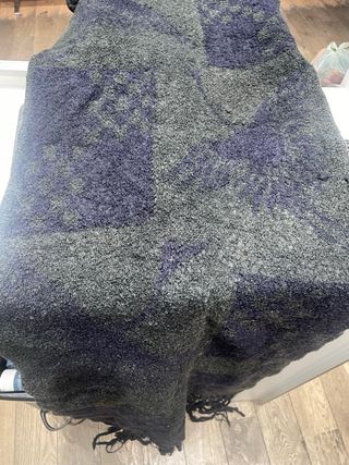 Splendida e calda sciarpa molto grande, stola o copri-spalle in lana. Perfetta per avvolgersi nelle giornate fredde, o come elegante accessorio da mettere sulle spalle sopra una giacca o un cappotto. Colore: Nero con un fitto motivo di puntini o fili bianchi/grigi (effetto sale e pepe / tweed / bouclé). Lavorazione: Tessuto a trama fitta e in rilievo, molto caldo e confortevole. Vestibilità: Molto versatile, può essere indossata come sciarpa, scialle o coperta leggera. Condizioni: Ottime condizioni, usato pochissimo. Pulito e pronto da indossare.#sciarpa #stola #coprispalle #scialle #nero #biancoenero #tweed #bouclé #lana #cald