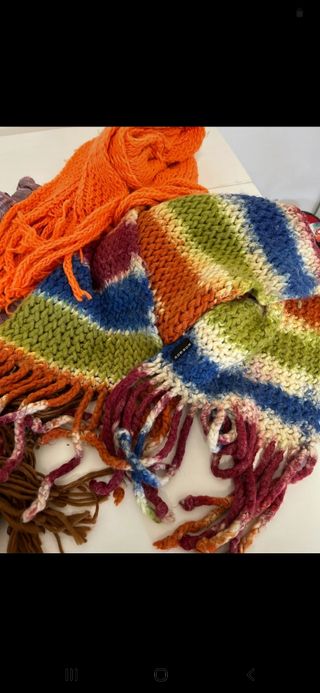 Vendo una sciarpa in lana con disegno natalizio +5 foulard leggeri utili a primavera e autunno. SOLO Sciarpa 4 euro. SOLO foulard 3 euro(tutti e 5).