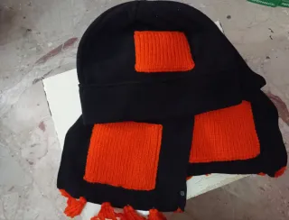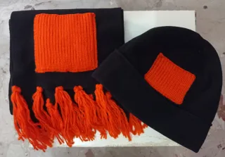 Sciarpa e berretto con inserti arancioni