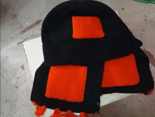Sciarpa e berretto neri con dettagli arancioni