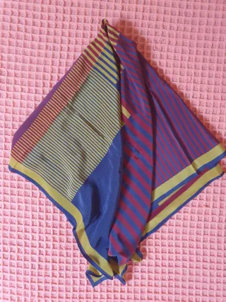 Elegante foulard in seta, perfetto per aggiungere un tocco di stile. - Dimensioni: 85x85cm circa. - Materiale: Seta. - Design a righe.