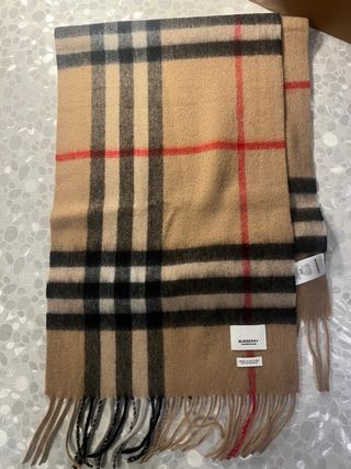 Sciarpa Burberry originale in colore beige con iconico motivo check. Morbida, elegante e versatile, perfetta per ogni outfit. In ottime condizioni, senza difetti. Ideale per chi cerca un accessorio classico e intramontabile.