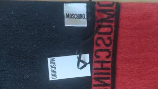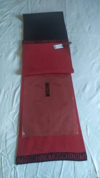 Sciarpa Moschino unisex in misto lana, con un design bicolore. - Logo Moschino stampato. - Tinta unita nera su un lato e rossa sull'altro. Sciarpa unisex misto lana Moschino. Condizioni perfette. Confezione originale. Misure in foto.
