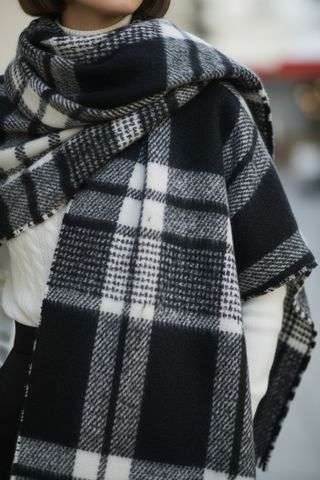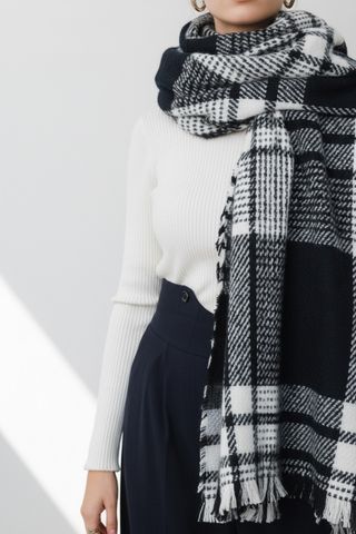 Sciarpone donna a quadri di tendenza bianco e ner