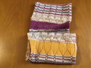 Elegante foulard Missoni realizzato in lana e mohair, con un bellissimo motivo a rombi e righe colorate. - Composizione: lana e mohair. - Design con rombi e righe. - Colori: viola e giallo. cm.160xcm.35