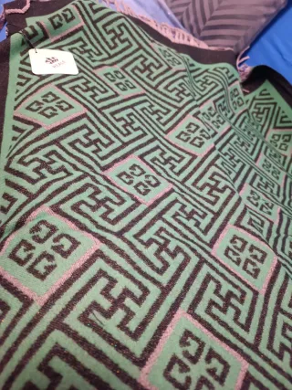 Sciarpa soffice con un design geometrico unico. - Motivo a greca in nero e verde. - Tessuto morbido al tatto. - Dettagli glitterati. Dimensioni: circa 2m x 40cm