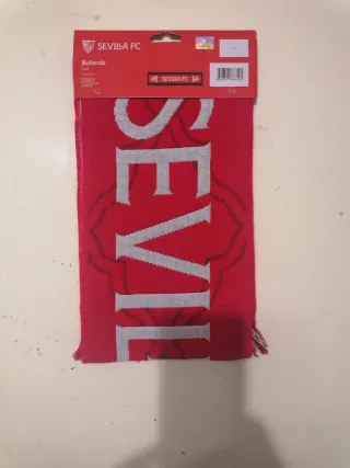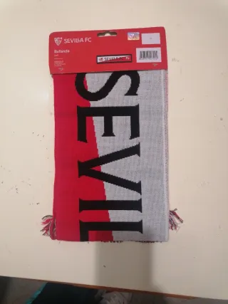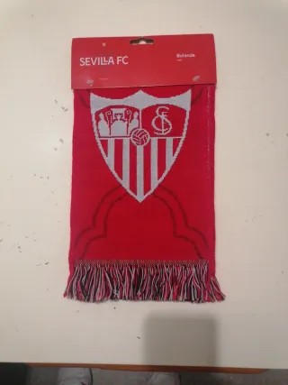 Sciarpa ufficiale del Sevilla FC, perfetta per i tifosi. - Design a scudo con logo. - Frange decorative sul bordo inferiore. - Colori a contrasto.