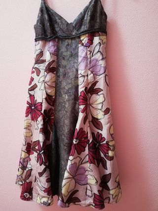 Vestito 👗 donna in 💯 seta,pizzo, TG S/XS, foderato, spalline , chiusura lampo dietro la schiena , fantasia floreale, indossato 1volta.