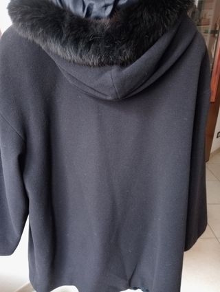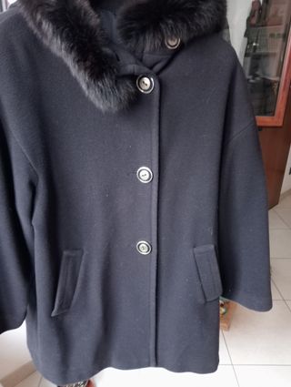 Giaccone donna con cappuccio,blu scuro, usato ma in buone condizioni, misto lana e cashmere, da lavare