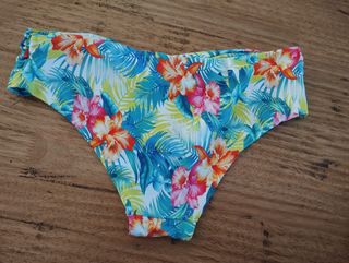 Slip costume da donna con una vivace stampa floreale tropicale. Il design presenta un'elegante torsione in vita. Taglia IV mai indossato. #yamamay #costumedonna