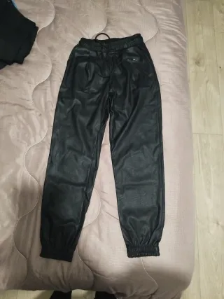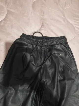 Pantaloni da donna in ecopelle con un design moderno e versatile. Vestono un po' largo - Vita elasticizzata con cordino regolabile. - Tasche laterali. - Fondo gamba elasticizzato.