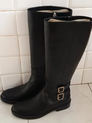 Eleganti stivali alti in pelle. - Dettaglio con fibbie dorate. - Zip laterale per facilitare la calzata.