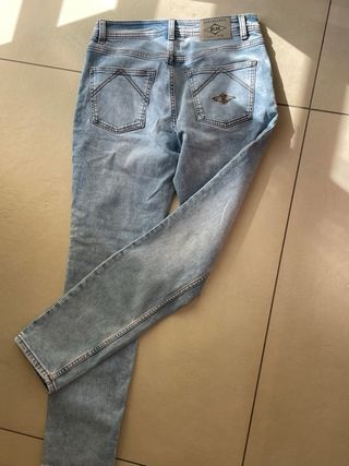 Jeans da uomo in denim di colore blu. - Vestibilità dritta - Tasche anteriori e posteriori - Chiusura con zip e bottone