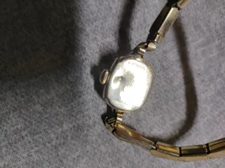 Orologio da polso con movimento manuale. Funzionante - Cassa in metallo argentato. - Quadrante nero. - Cinturino in metallo argentato.