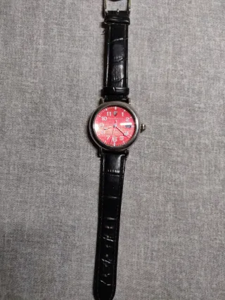 Orologio da polso con quadrante rosso e cinturino nero. A quarzo. Funzionante. - Logo Lamborghini sul quadrante. - Datario. - Resistente all'acqua 50M. - Movimento al quarzo.