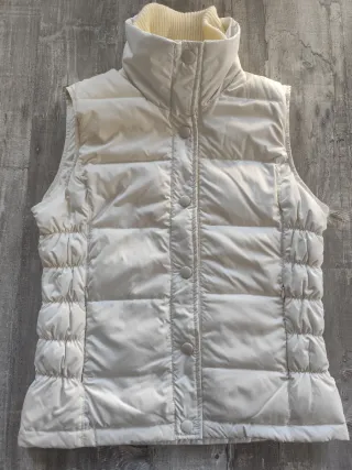 Smanicato Oviesse da donna in piuma, colore bianco/panna. Usato pochissimo, nessun difetto. Vendo per cambio taglia - Collo alto in maglia. - Chiusura centrale con bottoni a pressione. - Inserti laterali elasticizzati. - Trapuntatura orizzontale.