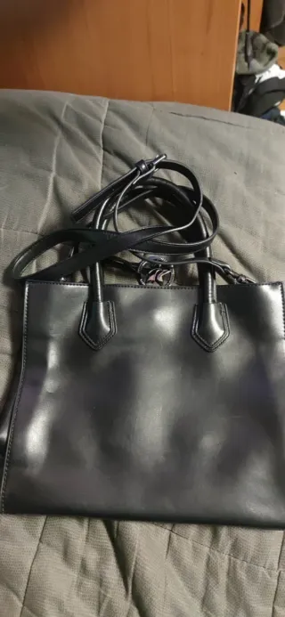 Elegante borsa in siminpelle nera, un accessorio versatile e raffinato.. mai usata.. per qualsiasi dubbio contattatemi - Materiale: simimpelle - Dettagli metallici. - Manici superiori e tracolla regolabile.