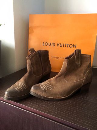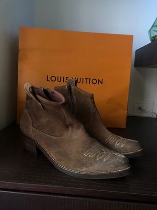 Stivaletti texani in pelle scamosciata. - Dettagli ricamati sulla punta. - Zip laterale per facilitare la calzata. - Tacco basso e comodo.