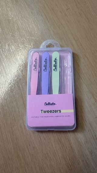 Set di tre pinzette per sopracciglia Belluto. - Tre colori assortiti: rosa, viola e verde. - Adatte per la rimozione dei peli superflui.