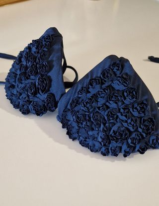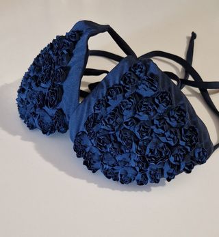 Pezzo sopra costume blu scuro con roselline in rilievo Philippe Matignon. Mai usato. Taglia I.