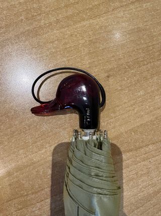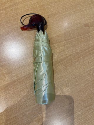 Ombrello in raso con manico a forma di anatra. - Colore verde pistacchio chiaro. - Tessuto in raso.