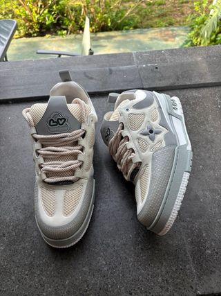 Sneakers Louis Vuitton in color grigio e bianco. - Design moderno e accattivante. - Dettagli con logo LV. - Suola in gomma.