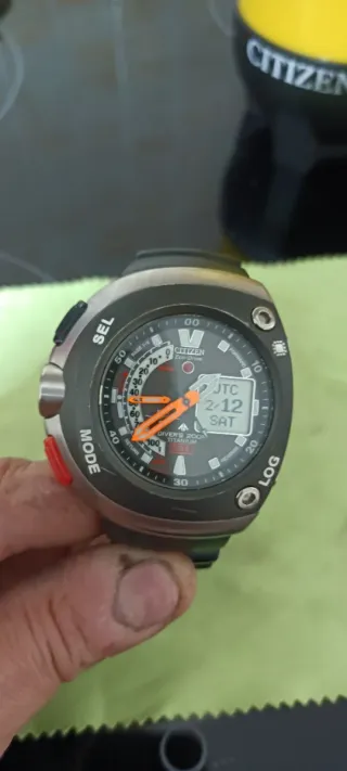 Orologio Citizen Promaster Aqualand. - Cassa in titanio. - Movimento Eco-Drive.Orologio in ottime condizioni estetiche la batteria sotto stress mantiene poco la carica e manca del copri sensore profondimetro