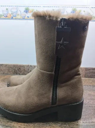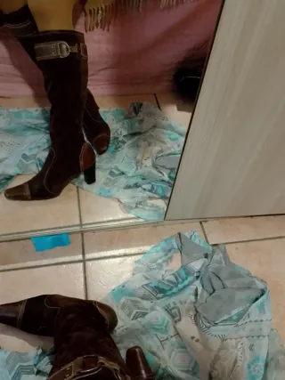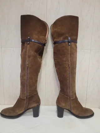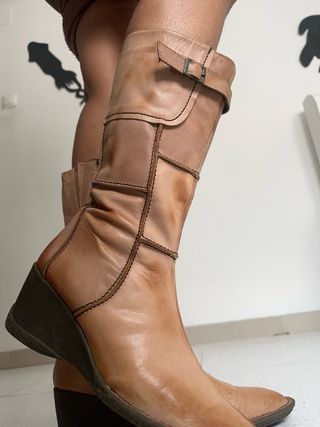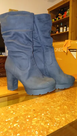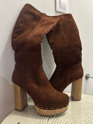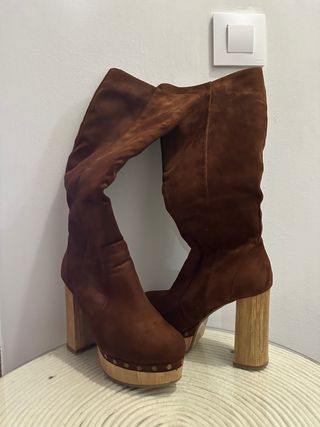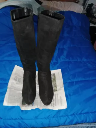 Stivali alti in stile giovanile. Materiale esterno in pelle scamosciata. - Cerniera laterale per facilitare l'accesso. - Tacco largo per una maggiore comodità di 12 cm, con piattaforma nella parte anteriore. La spedizione avviene tramite Correos, citypaq, inpost o Seur. Se qualcuno vive a Madrid, possiamo incontrarci di persona.