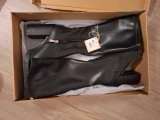 Stivali alti da donna, nuovi. Design elegante e moderno. Tacco grosso per maggiore comfort e stile. Cerniera laterale per facilitare l'indossaggio.