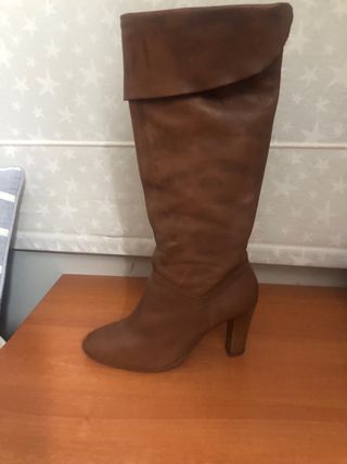 Stivali in pelle con stelo alto di colore marrone ocra. Molto comodi - Design con risvolto nella parte superiore. - Tacco grosso