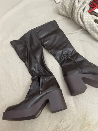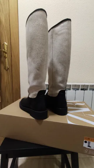 Stivali alti di Zara con un design moderno e versatile. Usati 3 volte, in perfette condizioni. Costavano 69€. Combinazione di colori beige e nero. Taglia 36.