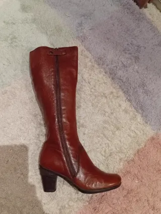 Stivali alti in pelle autentica di colore marrone chiaro/cammello, di eccellente qualità. Design comodo con cerniera laterale, fibbia decorativa sul gambale e tacco basso a zampa, ideale da indossare tutto il giorno. Sono molto poco usate, la pelle rimane flessibile e in ottime condizioni. La suola presenta solo un leggero usura (vedi foto). Un capo senza tempo che si abbina con abiti, gonne o jeans. Taglia: non indicata, ma corrispondono approssimativamente al 38,5. Consiglio per taglie 38/38,5.