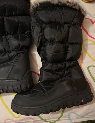Stivali alti da neve con finitura trapuntata e dettaglio di pelo. Chiusura con cerniera. Suola in gomma antiscivolo. Fodera interna morbida.