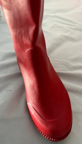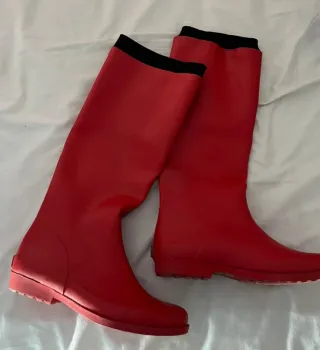 Stivali alti da acqua di colore rosso. - Design alto fino al ginocchio. - Dettaglio di bordo nero nella parte superiore. - Suola con rilievo per un migliore grip. - Ottime condizioni.