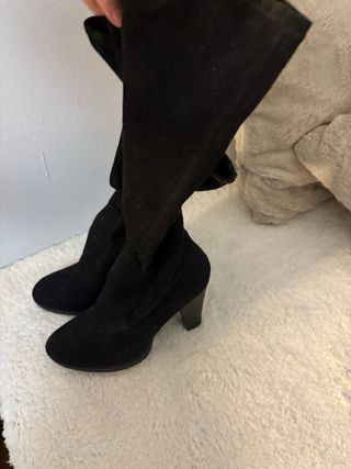 Stivali alti in pelle scamosciata neri. Design sopra il ginocchio. Cerniera laterale. Tacco quadrato.