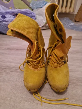 Stivali alti gialli con lacci