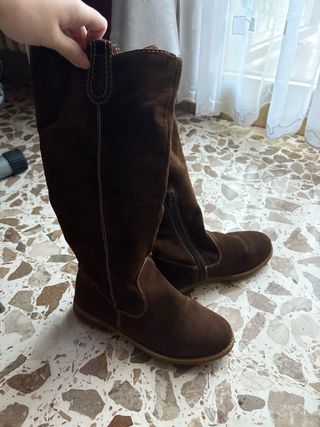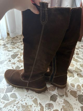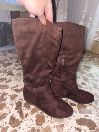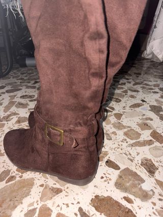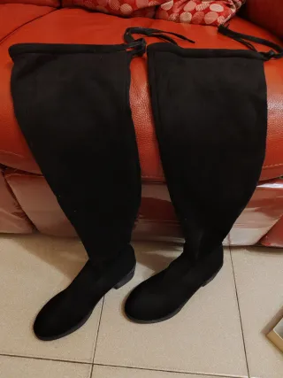 Stivali alti fino al ginocchio, perfetti per completare ogni outfit. - Materiale morbido effetto scamosciato. - Dettaglio con laccetti regolabili in cima. - Suola bassa e comoda.