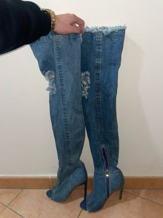 stivali di jeans da donna alti mai indossati nuovi, taglia 38