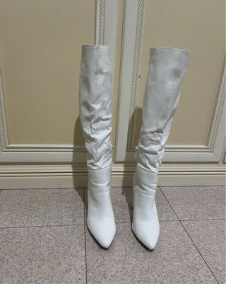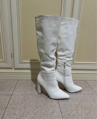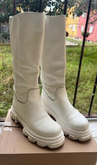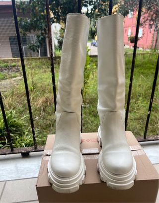 Stivali alti in pelle di colore bianco. - Materiale: pelle - Design a punta tonda - Suola spessa e carrarmato
