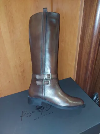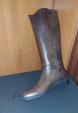 Fantastico stivale alto in morbido pellame colore marrone o testa di moro invecchiato n40 fondo gomma antiscivolo con cerniera comodo caldo elegante confortevole da indossare - Design con fibbie decorative. - Made in Italy.