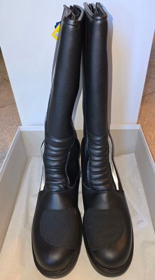 Vendo un paio di stivali da moto in pelle, in ottime condizioni. Sono neri con dettagli argento. - Stivali alti, allacciati sul retro. - Realizzati in pelle resistente. - Suola robusta e antiscivolo. - Protezioni rinforzate sulle caviglie.