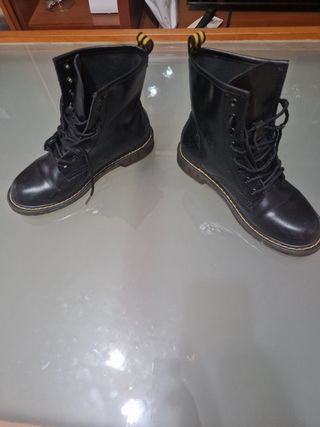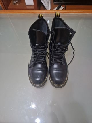 Stivali alti in pelle lucida. - Modello stringato. - Suola in gomma. - Design classico.